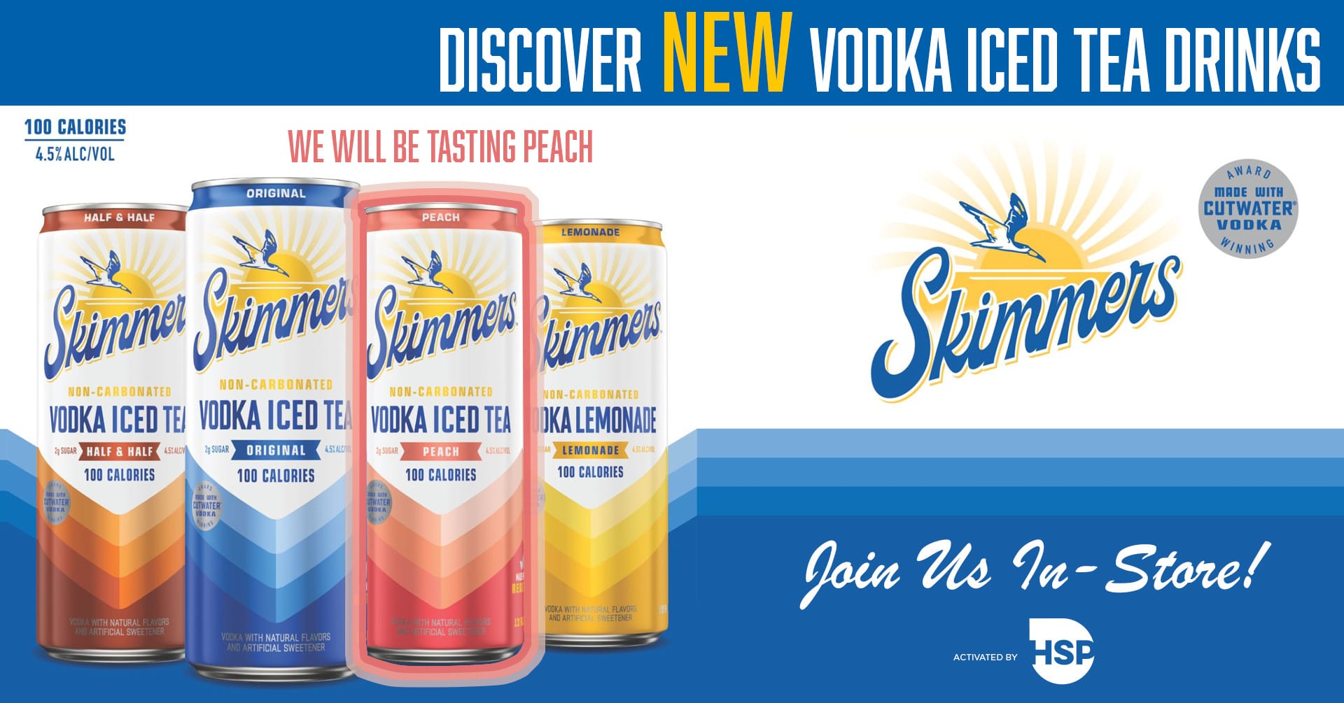 A new favorite for your summer! Skimmers Hard Iced Tea with Vodka is a non-carbonated ready-to-drink (RTD) beverage. Made with Cutwater vodka, real brewed tea, and natural flavors, it offers a refreshing alternative to traditional malt-based hard teas.